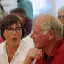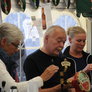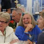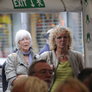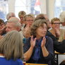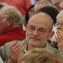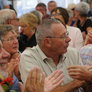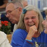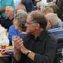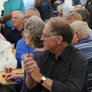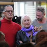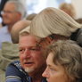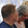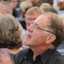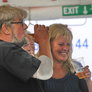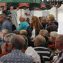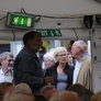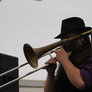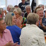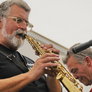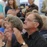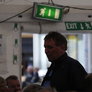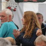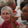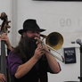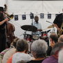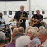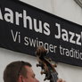 Det er trange forhold, så man kan faktisk ikke undgå at komme i tæt kontakt med de andre tilskuere, når der spilles op til Jazz i teltet på Telefontorvet, og gæsterne ser ud til at have det rigtig godt med de nære relationer.