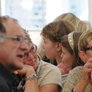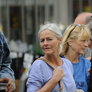 Vagtskiftet ved Marselisborg Slot skærtorsdag kl. 12 tiltrak mange fremmødte, mens politiets indsatsleder undervejs tog sig tid til at besvare spørgsmål fra en nysgerrig dreng.