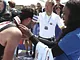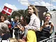 Vagtskiftet ved Marselisborg Slot skærtorsdag kl. 12 tiltrak mange fremmødte, mens politiets indsatsleder undervejs tog sig tid til at besvare spørgsmål fra en nysgerrig dreng.