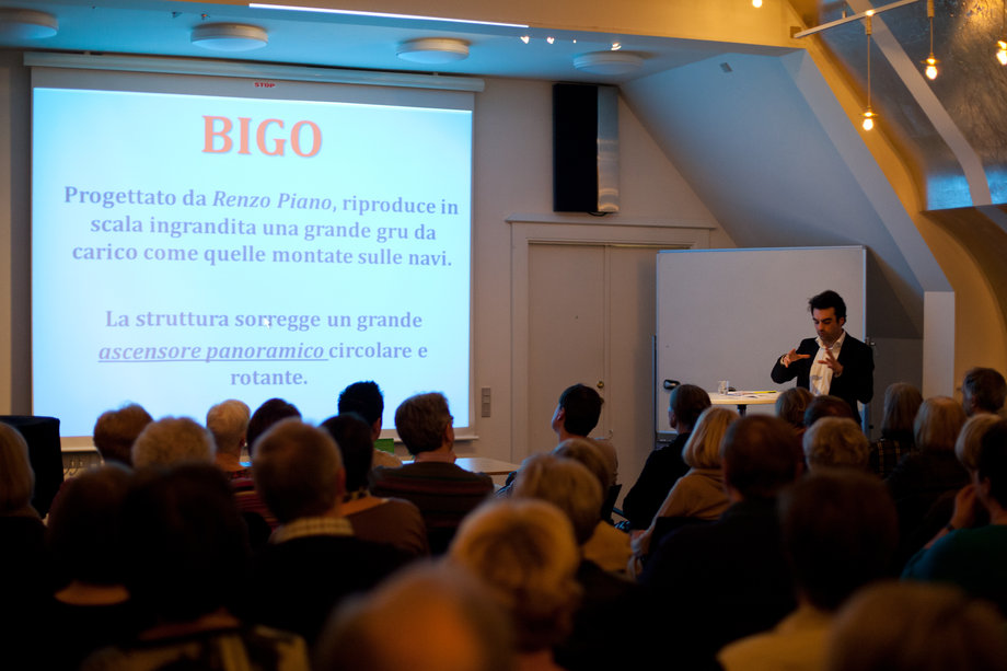 Foredrags holderen var Fabio Tamaroglio, indfødt genoveser og italiensklærer bosat i Århus.