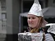 Vagtskiftet ved Marselisborg Slot skærtorsdag kl. 12 tiltrak mange fremmødte, mens politiets indsatsleder undervejs tog sig tid til at besvare spørgsmål fra en nysgerrig dreng.