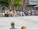 Vagtskiftet ved Marselisborg Slot skærtorsdag kl. 12 tiltrak mange fremmødte, mens politiets indsatsleder undervejs tog sig tid til at besvare spørgsmål fra en nysgerrig dreng.
