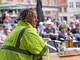 Vagtskiftet ved Marselisborg Slot skærtorsdag kl. 12 tiltrak mange fremmødte, mens politiets indsatsleder undervejs tog sig tid til at besvare spørgsmål fra en nysgerrig dreng.