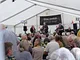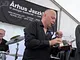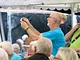 Vagtskiftet ved Marselisborg Slot skærtorsdag kl. 12 tiltrak mange fremmødte, mens politiets indsatsleder undervejs tog sig tid til at besvare spørgsmål fra en nysgerrig dreng.