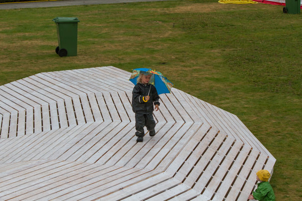 Selv om det regnet så var børnene meget optaget af at spille på luft, Trompet, Saxofon, Klaver, Guitar M.m.