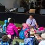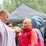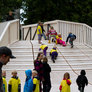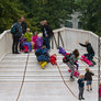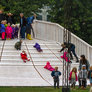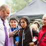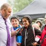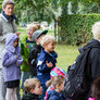 Vagtskiftet ved Marselisborg Slot skærtorsdag kl. 12 tiltrak mange fremmødte, mens politiets indsatsleder undervejs tog sig tid til at besvare spørgsmål fra en nysgerrig dreng.
