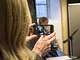 Vagtskiftet ved Marselisborg Slot skærtorsdag kl. 12 tiltrak mange fremmødte, mens politiets indsatsleder undervejs tog sig tid til at besvare spørgsmål fra en nysgerrig dreng.