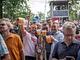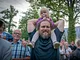 Vagtskiftet ved Marselisborg Slot skærtorsdag kl. 12 tiltrak mange fremmødte, mens politiets indsatsleder undervejs tog sig tid til at besvare spørgsmål fra en nysgerrig dreng.