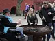 Vagtskiftet ved Marselisborg Slot skærtorsdag kl. 12 tiltrak mange fremmødte, mens politiets indsatsleder undervejs tog sig tid til at besvare spørgsmål fra en nysgerrig dreng.