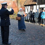 Vagtskiftet ved Marselisborg Slot skærtorsdag kl. 12 tiltrak mange fremmødte, mens politiets indsatsleder undervejs tog sig tid til at besvare spørgsmål fra en nysgerrig dreng.