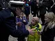 Vagtskiftet ved Marselisborg Slot skærtorsdag kl. 12 tiltrak mange fremmødte, mens politiets indsatsleder undervejs tog sig tid til at besvare spørgsmål fra en nysgerrig dreng.