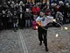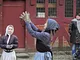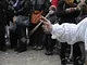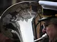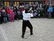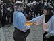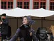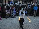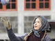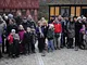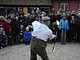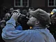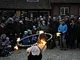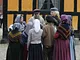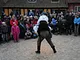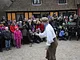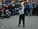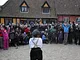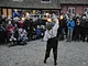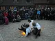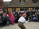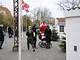 Vagtskiftet ved Marselisborg Slot skærtorsdag kl. 12 tiltrak mange fremmødte, mens politiets indsatsleder undervejs tog sig tid til at besvare spørgsmål fra en nysgerrig dreng.