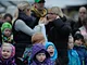 Vagtskiftet ved Marselisborg Slot skærtorsdag kl. 12 tiltrak mange fremmødte, mens politiets indsatsleder undervejs tog sig tid til at besvare spørgsmål fra en nysgerrig dreng.