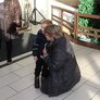 Vagtskiftet ved Marselisborg Slot skærtorsdag kl. 12 tiltrak mange fremmødte, mens politiets indsatsleder undervejs tog sig tid til at besvare spørgsmål fra en nysgerrig dreng.
