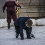 Vagtskiftet ved Marselisborg Slot skærtorsdag kl. 12 tiltrak mange fremmødte, mens politiets indsatsleder undervejs tog sig tid til at besvare spørgsmål fra en nysgerrig dreng.