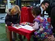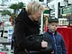 Vagtskiftet ved Marselisborg Slot skærtorsdag kl. 12 tiltrak mange fremmødte, mens politiets indsatsleder undervejs tog sig tid til at besvare spørgsmål fra en nysgerrig dreng.