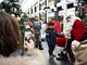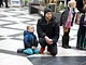 Vagtskiftet ved Marselisborg Slot skærtorsdag kl. 12 tiltrak mange fremmødte, mens politiets indsatsleder undervejs tog sig tid til at besvare spørgsmål fra en nysgerrig dreng.