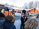 Vagtskiftet ved Marselisborg Slot skærtorsdag kl. 12 tiltrak mange fremmødte, mens politiets indsatsleder undervejs tog sig tid til at besvare spørgsmål fra en nysgerrig dreng.