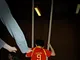 Vagtskiftet ved Marselisborg Slot skærtorsdag kl. 12 tiltrak mange fremmødte, mens politiets indsatsleder undervejs tog sig tid til at besvare spørgsmål fra en nysgerrig dreng.