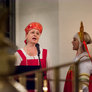 Vagtskiftet ved Marselisborg Slot skærtorsdag kl. 12 tiltrak mange fremmødte, mens politiets indsatsleder undervejs tog sig tid til at besvare spørgsmål fra en nysgerrig dreng.