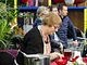 Vagtskiftet ved Marselisborg Slot skærtorsdag kl. 12 tiltrak mange fremmødte, mens politiets indsatsleder undervejs tog sig tid til at besvare spørgsmål fra en nysgerrig dreng.