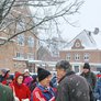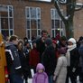 Vagtskiftet ved Marselisborg Slot skærtorsdag kl. 12 tiltrak mange fremmødte, mens politiets indsatsleder undervejs tog sig tid til at besvare spørgsmål fra en nysgerrig dreng.