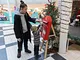 Vagtskiftet ved Marselisborg Slot skærtorsdag kl. 12 tiltrak mange fremmødte, mens politiets indsatsleder undervejs tog sig tid til at besvare spørgsmål fra en nysgerrig dreng.