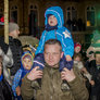 Vagtskiftet ved Marselisborg Slot skærtorsdag kl. 12 tiltrak mange fremmødte, mens politiets indsatsleder undervejs tog sig tid til at besvare spørgsmål fra en nysgerrig dreng.