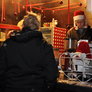 Vagtskiftet ved Marselisborg Slot skærtorsdag kl. 12 tiltrak mange fremmødte, mens politiets indsatsleder undervejs tog sig tid til at besvare spørgsmål fra en nysgerrig dreng.