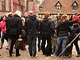 Vagtskiftet ved Marselisborg Slot skærtorsdag kl. 12 tiltrak mange fremmødte, mens politiets indsatsleder undervejs tog sig tid til at besvare spørgsmål fra en nysgerrig dreng.