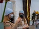 Vagtskiftet ved Marselisborg Slot skærtorsdag kl. 12 tiltrak mange fremmødte, mens politiets indsatsleder undervejs tog sig tid til at besvare spørgsmål fra en nysgerrig dreng.