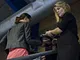 Vagtskiftet ved Marselisborg Slot skærtorsdag kl. 12 tiltrak mange fremmødte, mens politiets indsatsleder undervejs tog sig tid til at besvare spørgsmål fra en nysgerrig dreng.