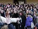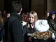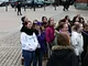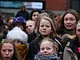 Vagtskiftet ved Marselisborg Slot skærtorsdag kl. 12 tiltrak mange fremmødte, mens politiets indsatsleder undervejs tog sig tid til at besvare spørgsmål fra en nysgerrig dreng.