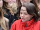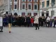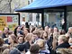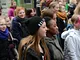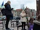 Vagtskiftet ved Marselisborg Slot skærtorsdag kl. 12 tiltrak mange fremmødte, mens politiets indsatsleder undervejs tog sig tid til at besvare spørgsmål fra en nysgerrig dreng.