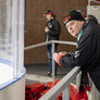 Vagtskiftet ved Marselisborg Slot skærtorsdag kl. 12 tiltrak mange fremmødte, mens politiets indsatsleder undervejs tog sig tid til at besvare spørgsmål fra en nysgerrig dreng.