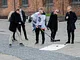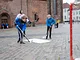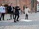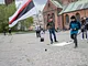 Vagtskiftet ved Marselisborg Slot skærtorsdag kl. 12 tiltrak mange fremmødte, mens politiets indsatsleder undervejs tog sig tid til at besvare spørgsmål fra en nysgerrig dreng.