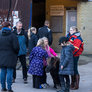 Vagtskiftet ved Marselisborg Slot skærtorsdag kl. 12 tiltrak mange fremmødte, mens politiets indsatsleder undervejs tog sig tid til at besvare spørgsmål fra en nysgerrig dreng.