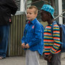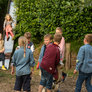 Vagtskiftet ved Marselisborg Slot skærtorsdag kl. 12 tiltrak mange fremmødte, mens politiets indsatsleder undervejs tog sig tid til at besvare spørgsmål fra en nysgerrig dreng.