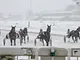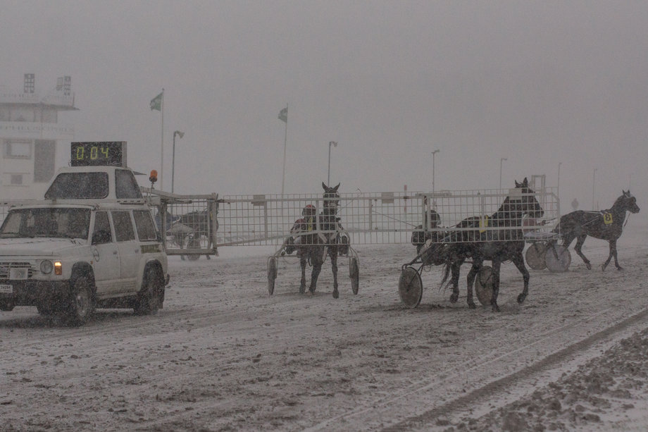 Snestorm på denne dag med årets sidste løb på JVB. Der var ren rå hygge indendøre mens sneen føg hen over kuskene på banen. Billeder fra startbilen i 4. Løb...