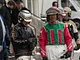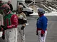 Vagtskiftet ved Marselisborg Slot skærtorsdag kl. 12 tiltrak mange fremmødte, mens politiets indsatsleder undervejs tog sig tid til at besvare spørgsmål fra en nysgerrig dreng.