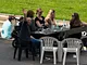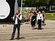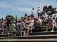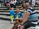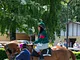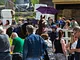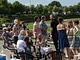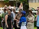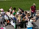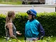 Vagtskiftet ved Marselisborg Slot skærtorsdag kl. 12 tiltrak mange fremmødte, mens politiets indsatsleder undervejs tog sig tid til at besvare spørgsmål fra en nysgerrig dreng.