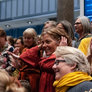Vagtskiftet ved Marselisborg Slot skærtorsdag kl. 12 tiltrak mange fremmødte, mens politiets indsatsleder undervejs tog sig tid til at besvare spørgsmål fra en nysgerrig dreng.