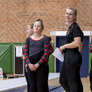 Vagtskiftet ved Marselisborg Slot skærtorsdag kl. 12 tiltrak mange fremmødte, mens politiets indsatsleder undervejs tog sig tid til at besvare spørgsmål fra en nysgerrig dreng.