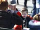 Vagtskiftet ved Marselisborg Slot skærtorsdag kl. 12 tiltrak mange fremmødte, mens politiets indsatsleder undervejs tog sig tid til at besvare spørgsmål fra en nysgerrig dreng.