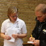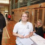 Vagtskiftet ved Marselisborg Slot skærtorsdag kl. 12 tiltrak mange fremmødte, mens politiets indsatsleder undervejs tog sig tid til at besvare spørgsmål fra en nysgerrig dreng.