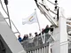 Vagtskiftet ved Marselisborg Slot skærtorsdag kl. 12 tiltrak mange fremmødte, mens politiets indsatsleder undervejs tog sig tid til at besvare spørgsmål fra en nysgerrig dreng.