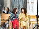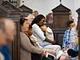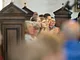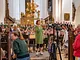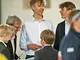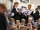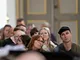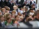 Vagtskiftet ved Marselisborg Slot skærtorsdag kl. 12 tiltrak mange fremmødte, mens politiets indsatsleder undervejs tog sig tid til at besvare spørgsmål fra en nysgerrig dreng.