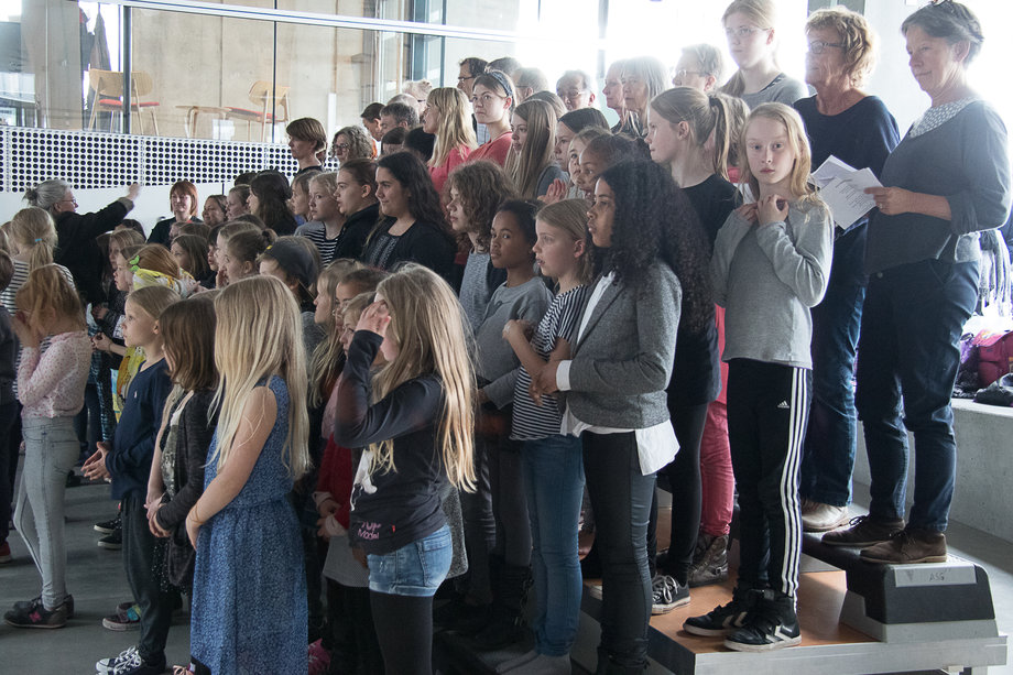 Tirsdag eftermiddag genlød Dokk1 af korsang. Kor fra Kochs Skole stod for underholdningen.