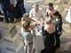 Vagtskiftet ved Marselisborg Slot skærtorsdag kl. 12 tiltrak mange fremmødte, mens politiets indsatsleder undervejs tog sig tid til at besvare spørgsmål fra en nysgerrig dreng.