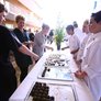 Vagtskiftet ved Marselisborg Slot skærtorsdag kl. 12 tiltrak mange fremmødte, mens politiets indsatsleder undervejs tog sig tid til at besvare spørgsmål fra en nysgerrig dreng.